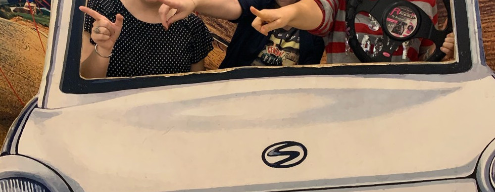 The dinosaur, my friends, and I serve as the foreground of the piece. Generally, objects in the foreground appear the biggest and sharpest of the whole piece to give the viewer the illusion that they are closer to them. The road and car are smaller and a bit fuzzy, indicating that it’s farther away. This imitates how our brains and eye perceive the world around us.